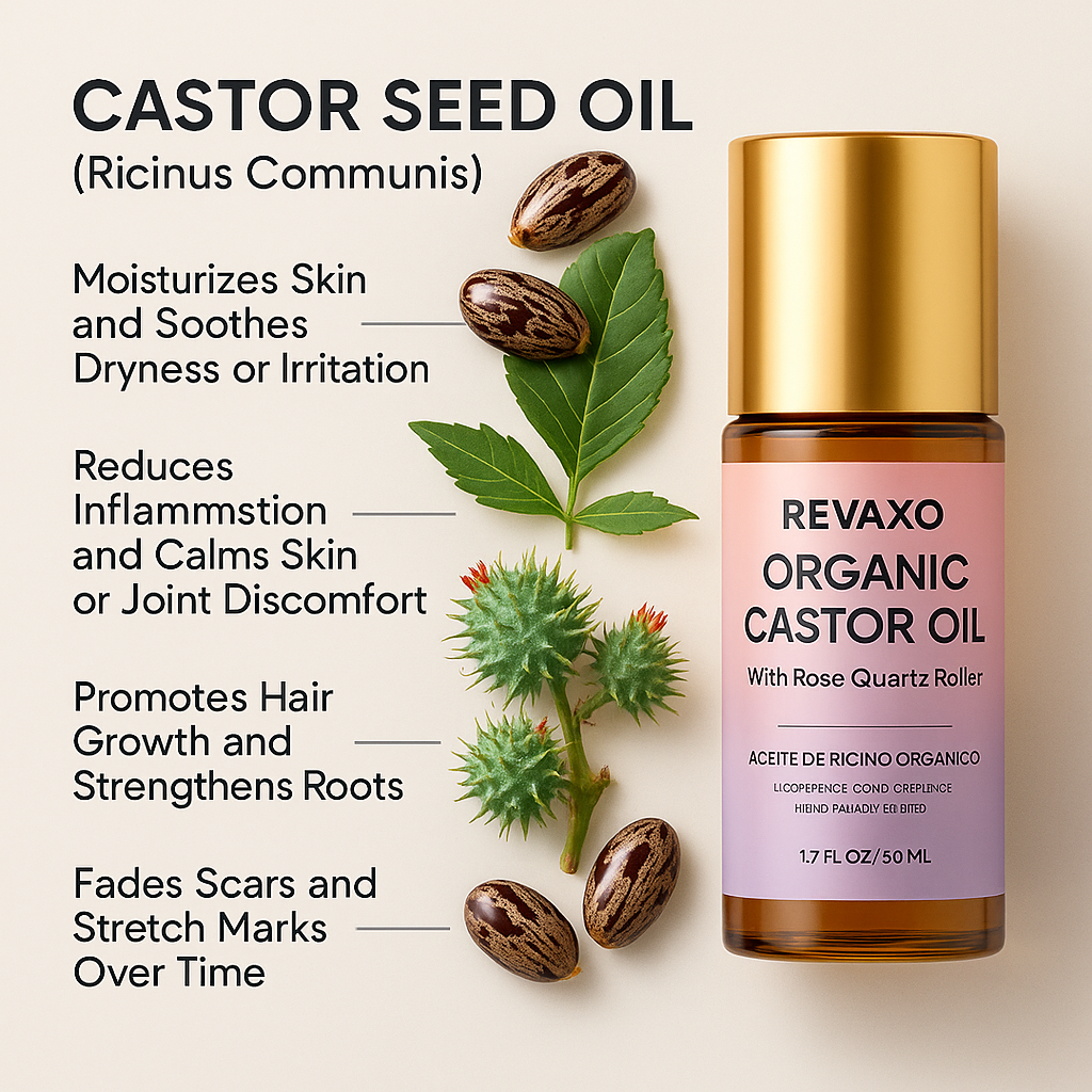 Nature’s Botox in a Bottle De-puffs eyes, smooths lines, and boosts all-day glow — powered by extra-virgin organic castor oil in a cooling rose quartz roller. Also hydrates, promotes lash & brow growth, and works on face, belly, and cuticles. 100% organic.